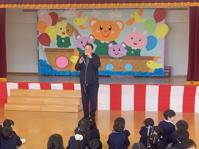 園長先生からは、「4月になると一つお兄さん、お姉さんになりますが、今の姿もとても立派でかっこいいですね。始業式には新しいクラスや先生が決まりますので、楽しみにしていてくださいね」とお話があり、「4月にまた元気に会いましょう」と温かい言葉が送られました。